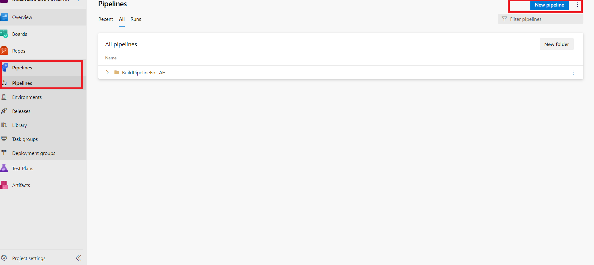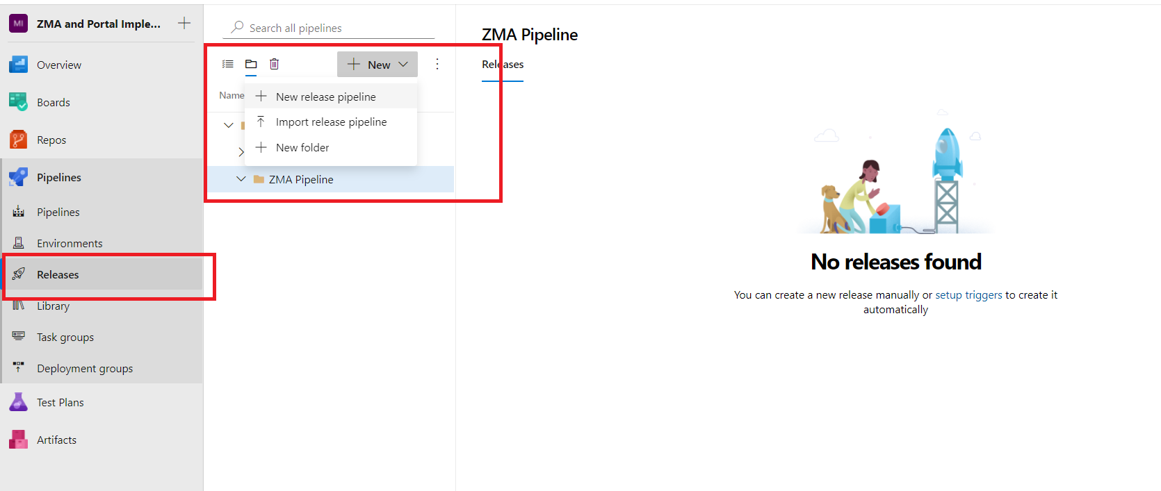 - From the side menu go to “Releases” tab and create a New Release Pipeline.