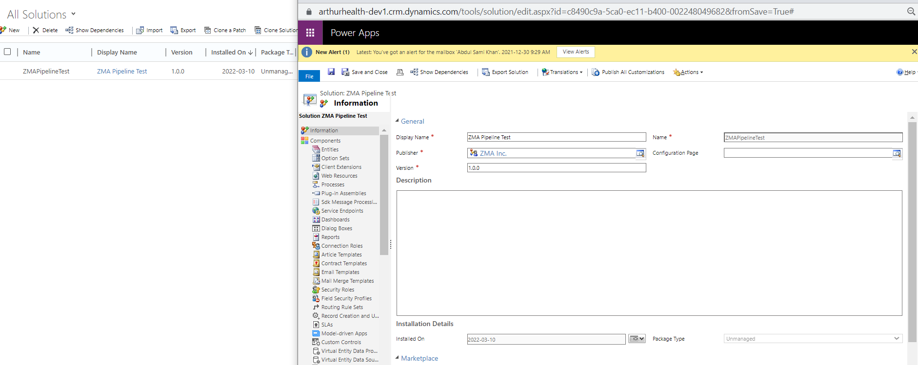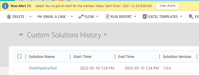 Now the “ZMAPipelineTest” managed solution is successfully deployed from one Dev environment to two test environments by using the CI/CD (Build & Release Pipeline).