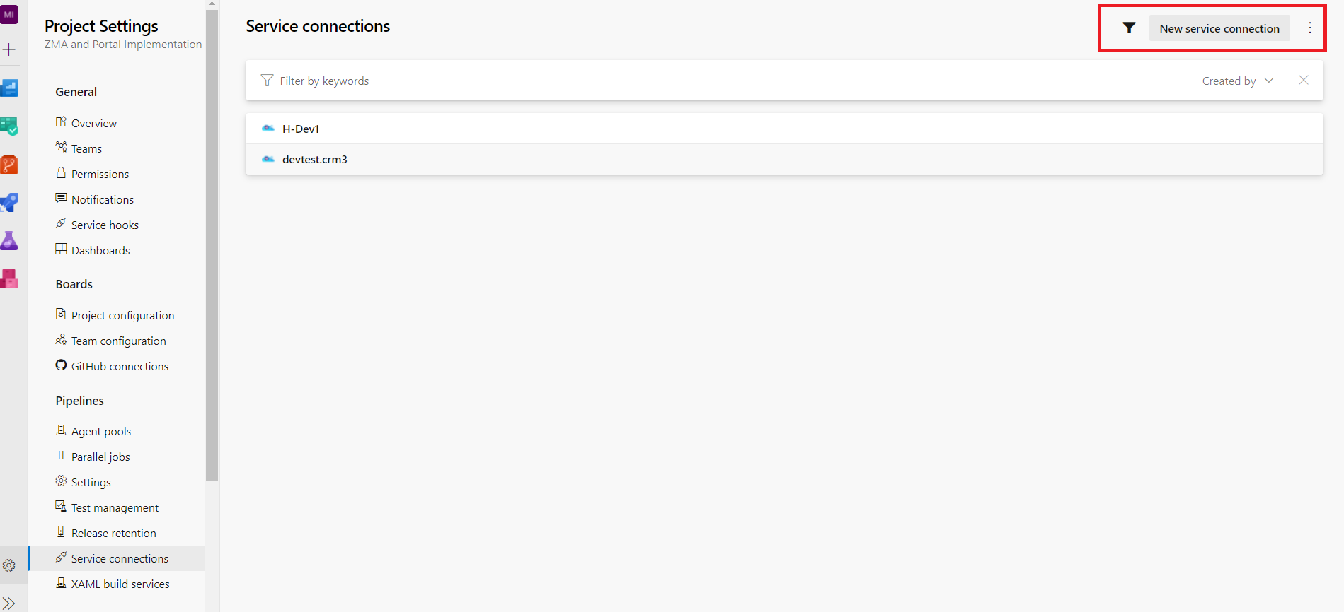 Click on “Manage” as highlighted in above image and you will be redirected to the Project Settings page, there you need to click on “New service connection”
